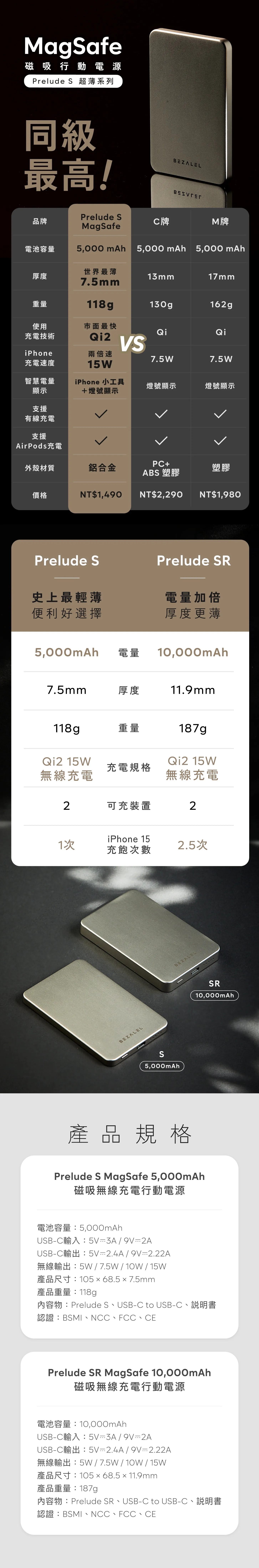 Prelude S MagSafe 5,000mAh 磁吸無線充電行動電源