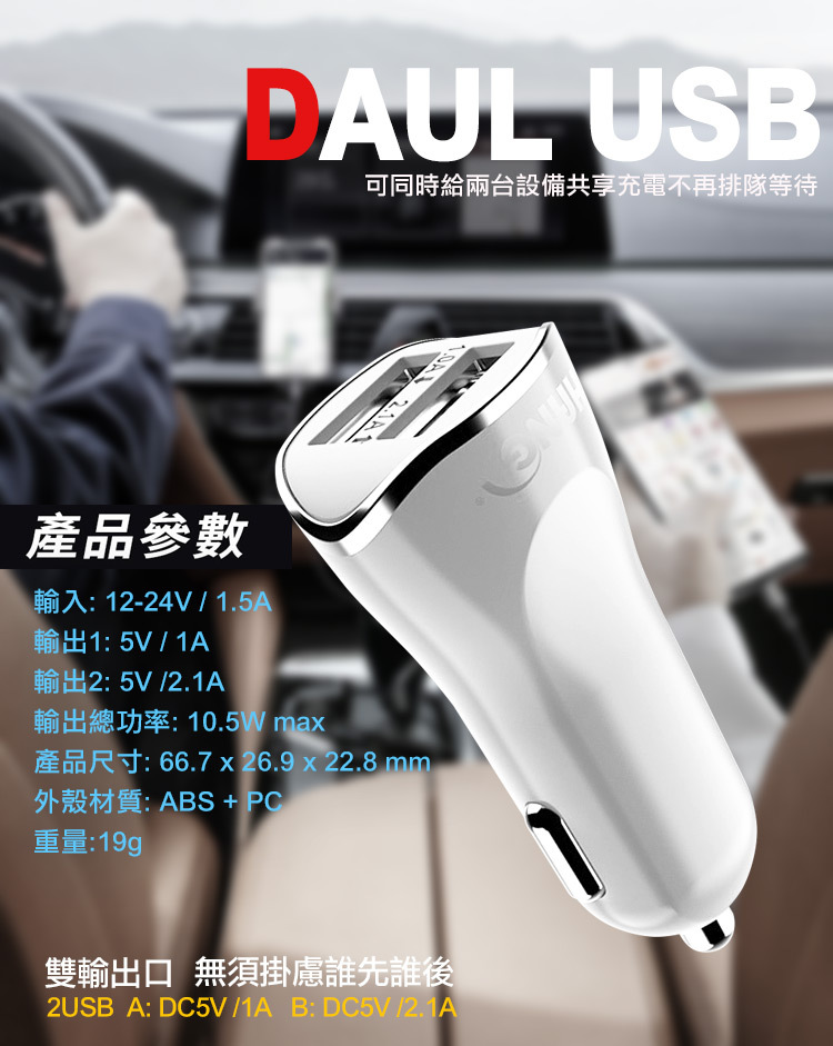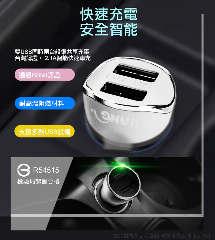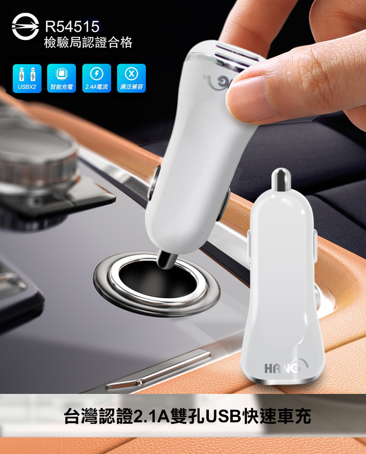 HANG H302A 2.1A雙孔USB快速車充【S86】