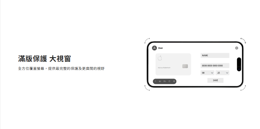 ● 滿版保護 大視窗:全方位覆蓋螢幕,提供最完整的保護及更廣闊的視野