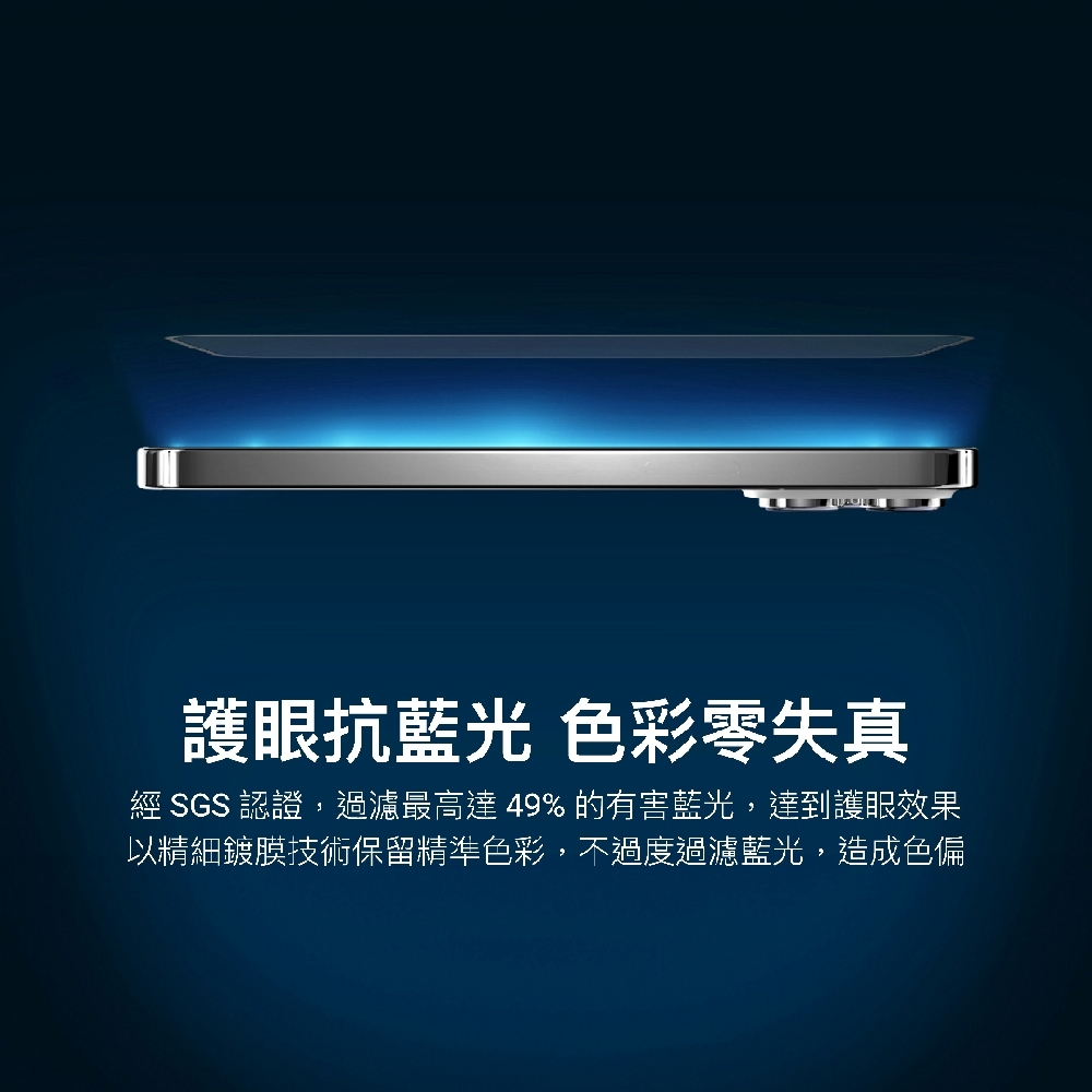 ● 護眼抗藍光 色彩零失真:經 SGS 認證,過濾最高達 49% 的有害藍光,達到護眼效果。以精細鍍膜技術保留精準色彩,不過度過濾藍光,造成色偏