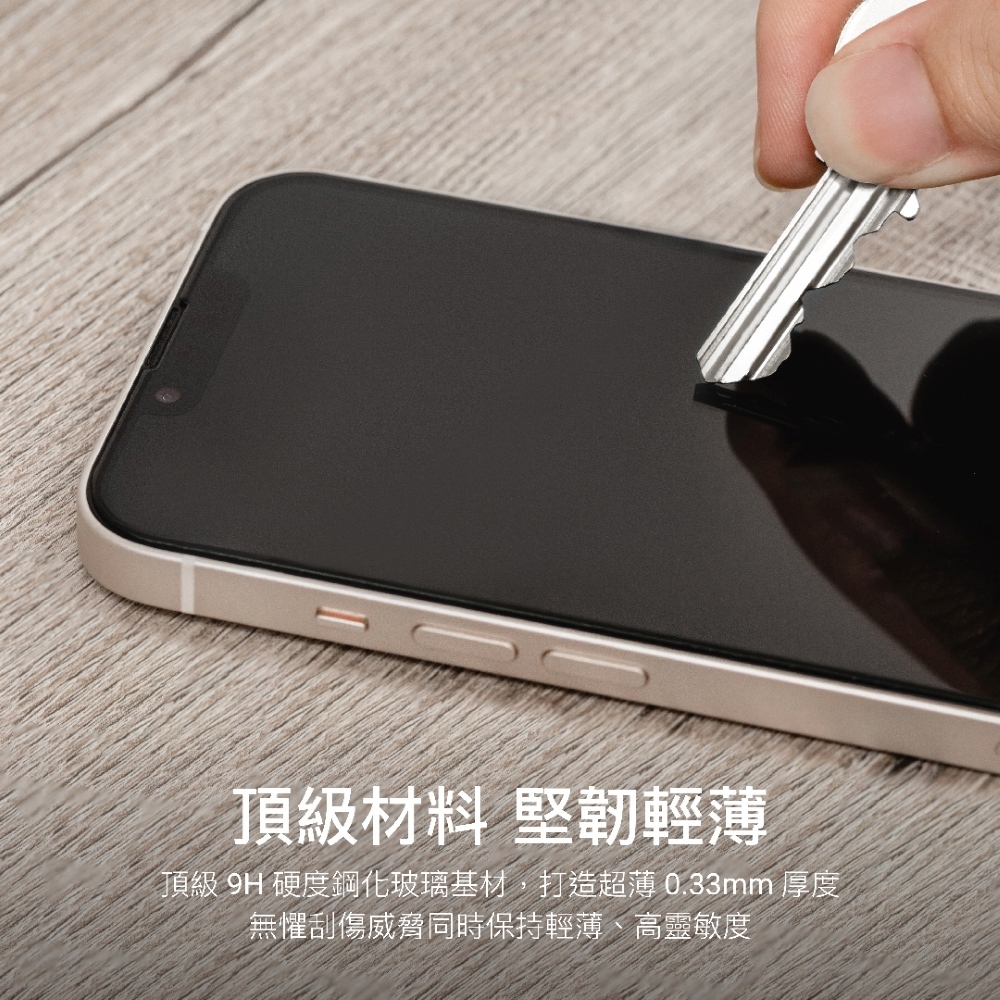 ● 頂級材料 堅韌輕薄:頂級 9H 硬度鋼化玻璃基材,打造超薄 0.33mm 厚度,無懼刮傷威脅同時保持輕薄、高靈敏度