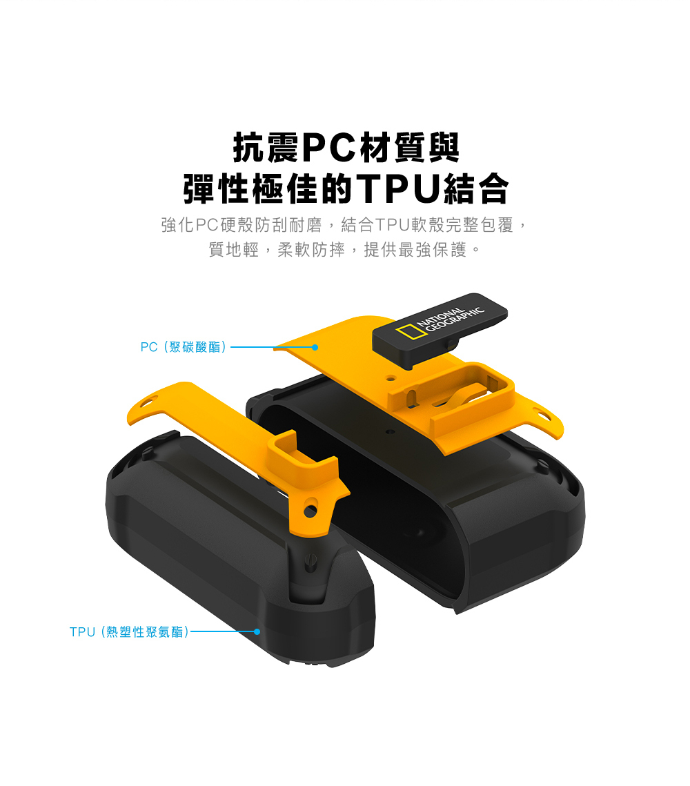 • 抗震PC材質與彈性極佳的TPU結合,強化PC硬殼防刮耐磨,結合TPU軟殼完整包覆,質地輕且柔軟防摔,提供最強保護