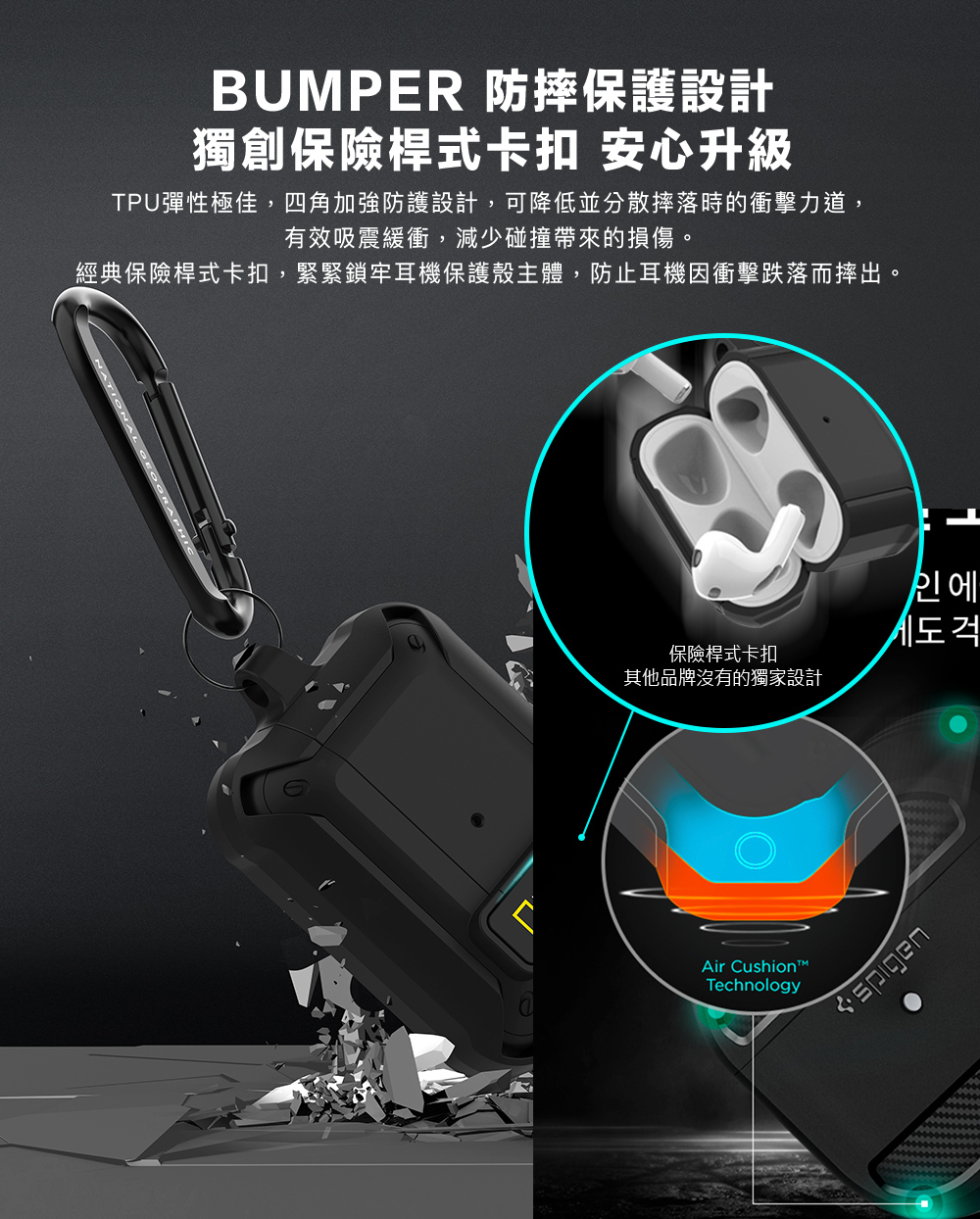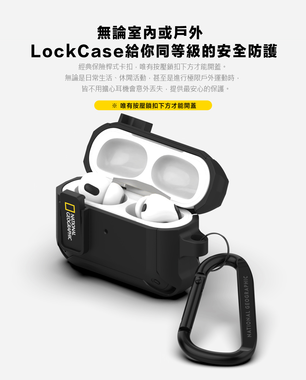 • 獨創保險桿式卡扣安心升級,唯有按壓鎖扣下方才能開蓋,不必擔心耳機丟失
