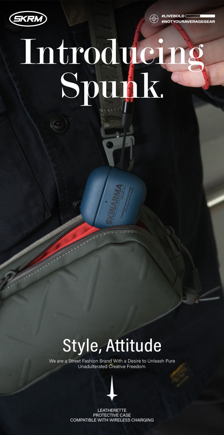 為您的 AirPods 4 打造的保護套,擁有 SPUNK 標誌性的紋理表面和凸起印花設計,為您增添獨特風格。