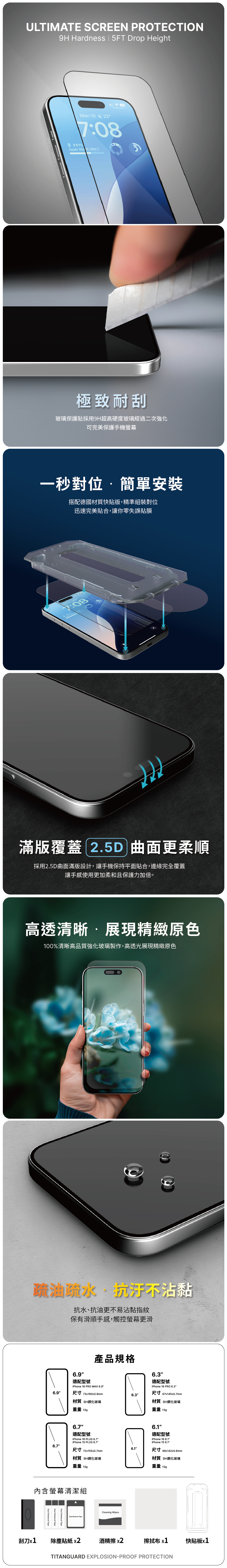 包裝內容物:JTLEGEND TITANGUARD鋼化玻璃保護貼-亮面*1、快貼版*1、清潔包*1