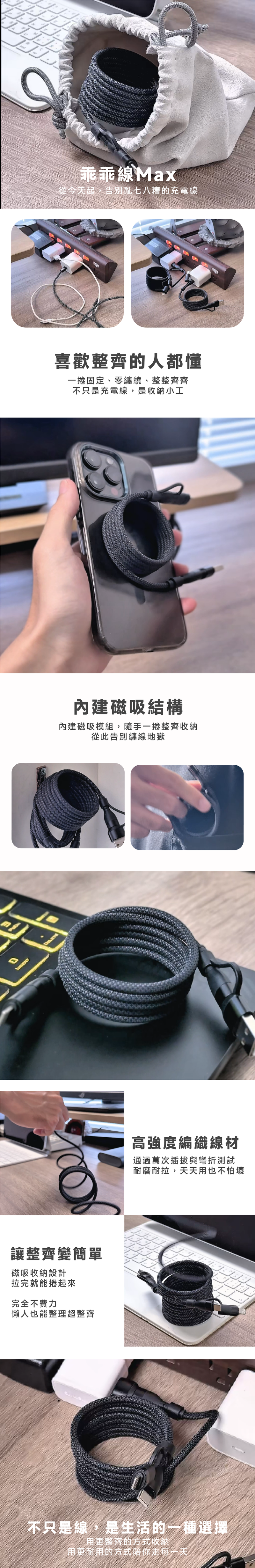 黑白雙色簡約百搭,1 米日常剛好,2 米居家超方便。