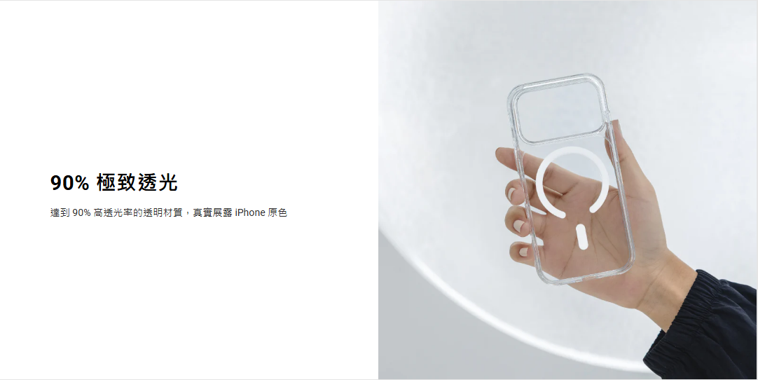 90% 極致透光: 高透光材質呈現 iPhone 原色之美