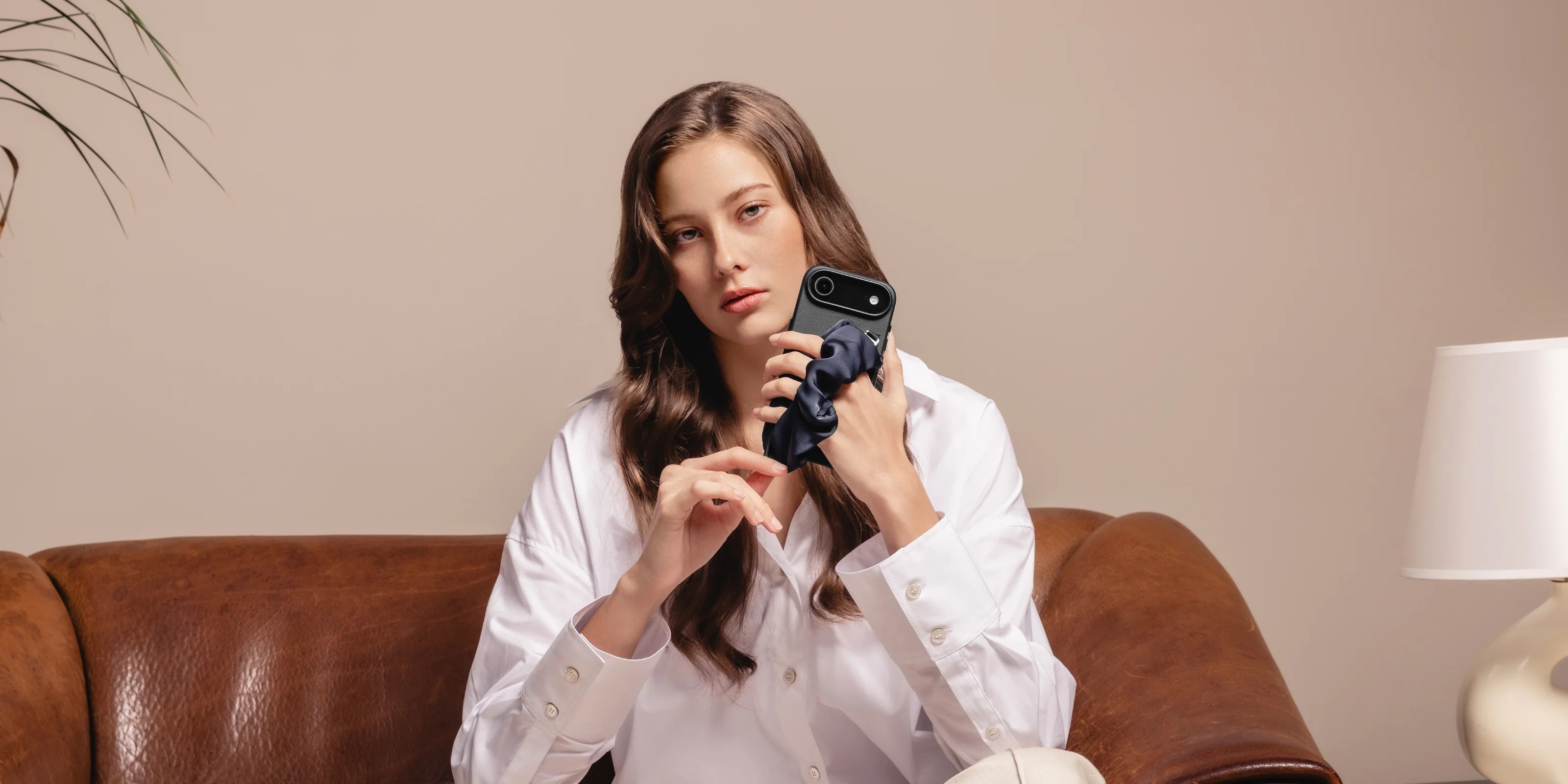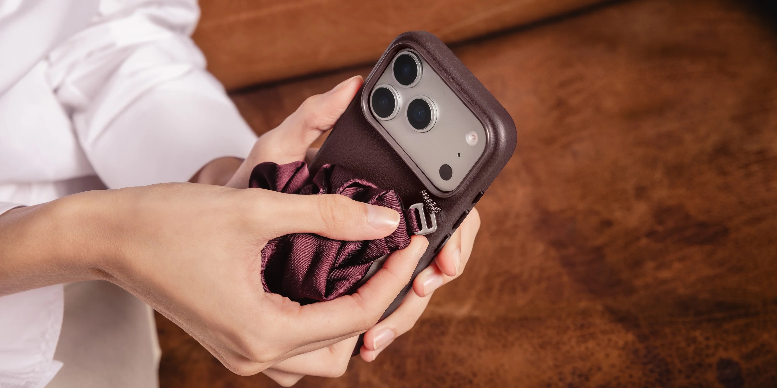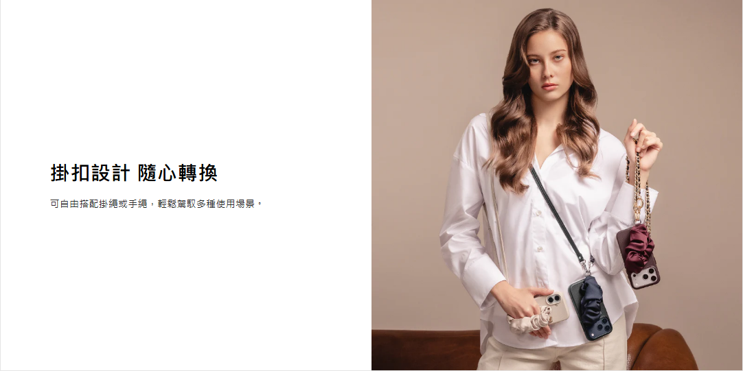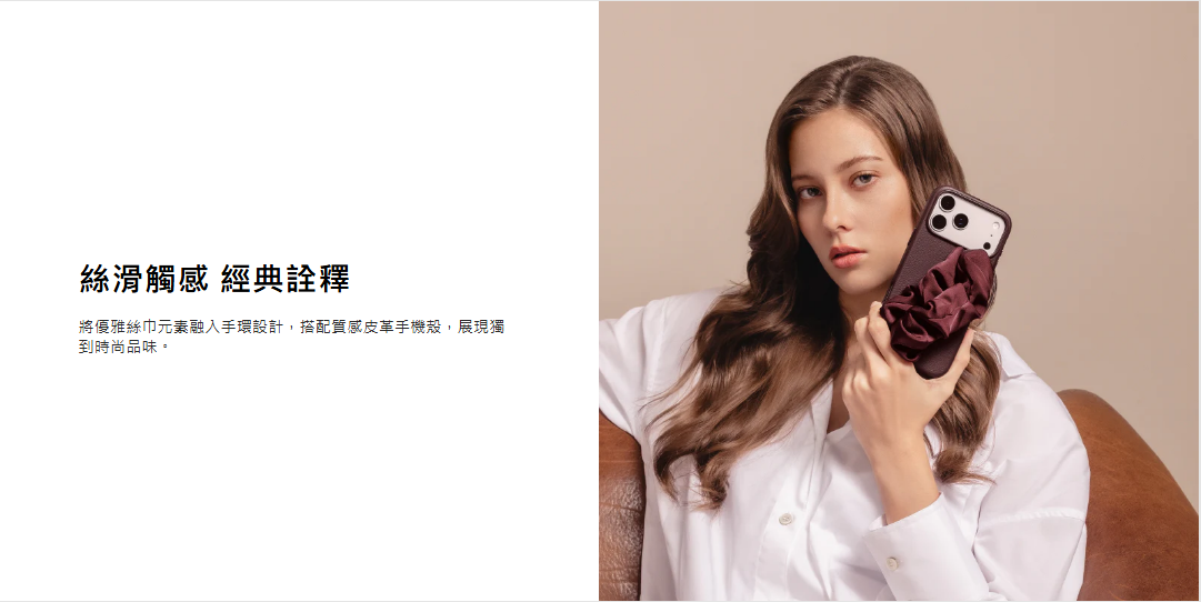 絲滑觸感・經典詮釋: 將絲巾元素融入設計,搭配質感皮革殼,展現優雅時尚品味。