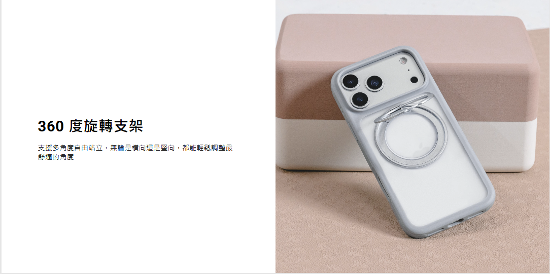 360 度旋轉支架: 橫豎皆可自由站立,輕鬆調整最舒適視角。