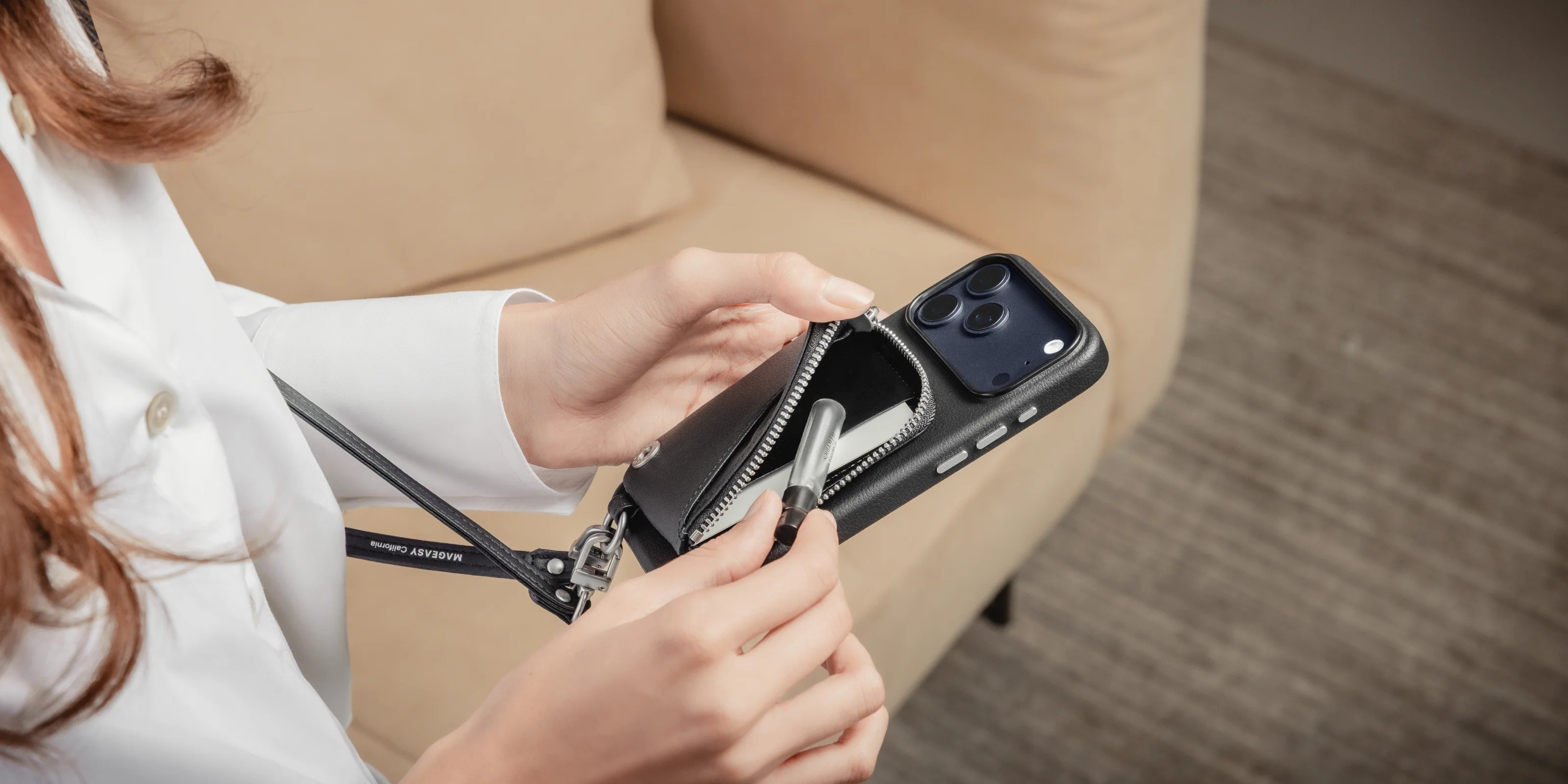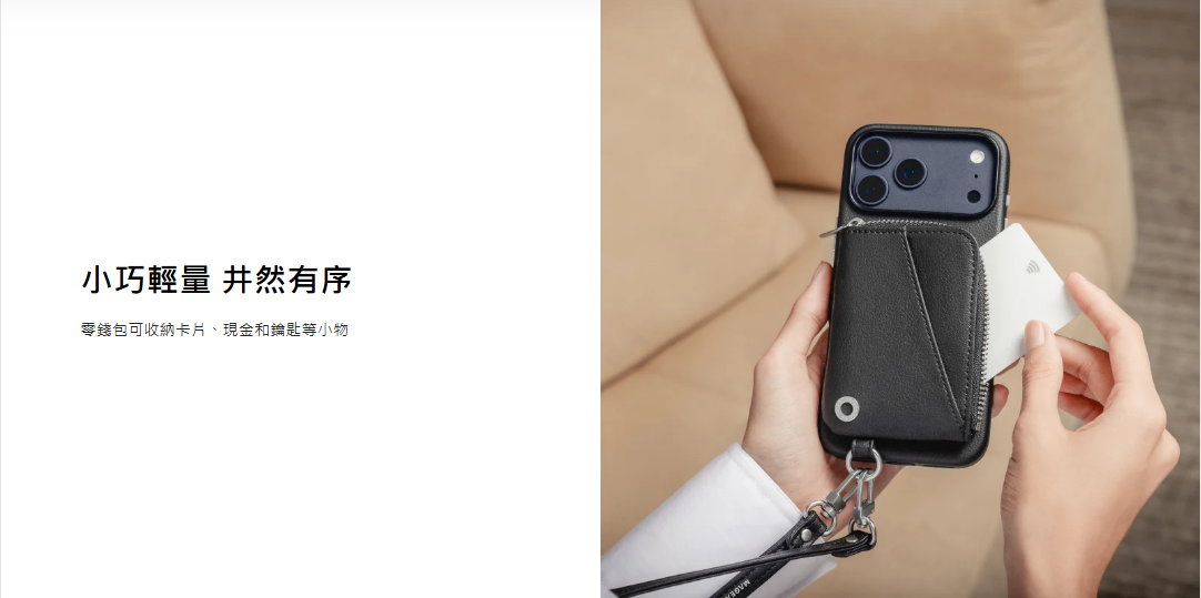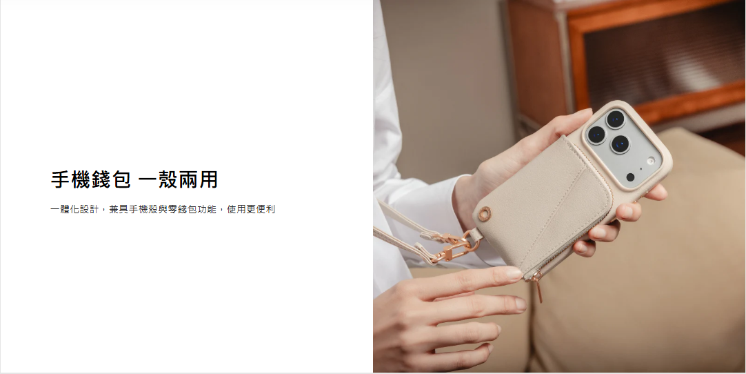 手機錢包・一殼兩用: 一體式設計,兼具手機殼與零錢包功能。