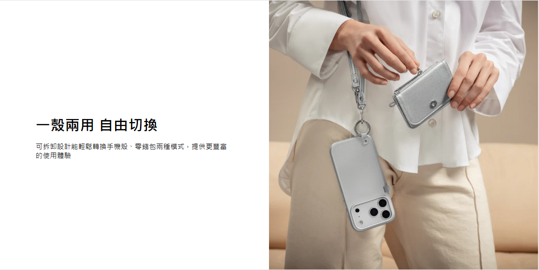 一殼兩用・自由切換: 可拆式設計,輕鬆轉換手機殼與零錢包模式。