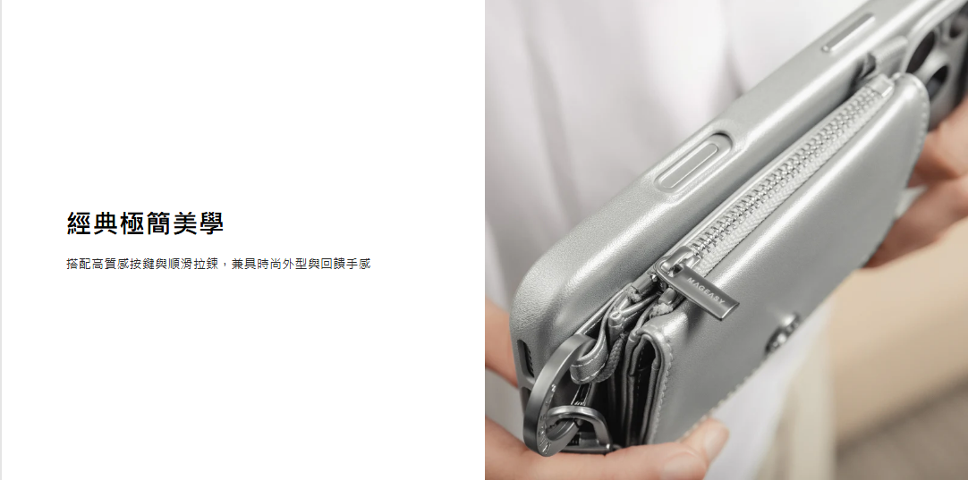 經典極簡・質感細節: 高質感按鍵搭配順滑拉鍊,時尚俐落。