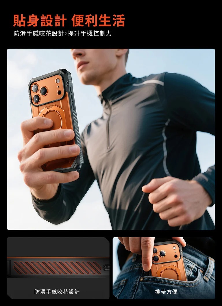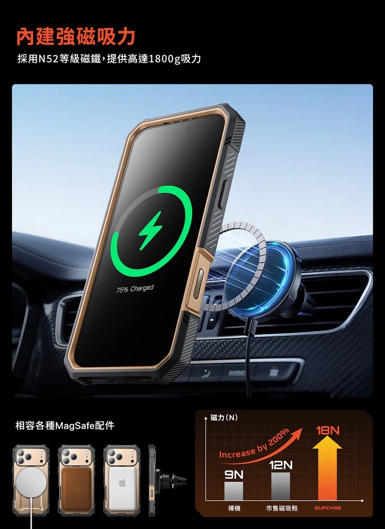 N52 強磁背板: 支援 MagSafe 磁吸與無線充電。