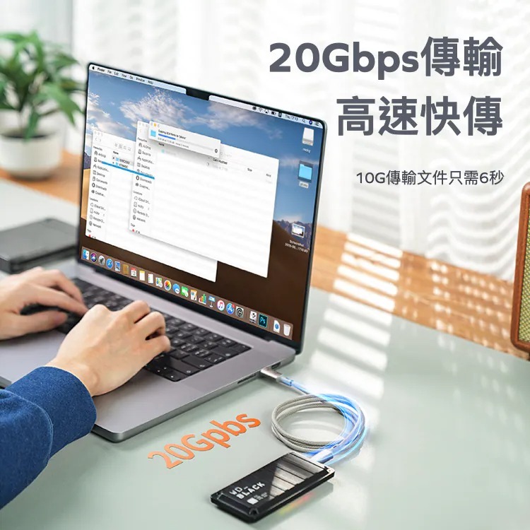 採用USB3.2 Gen 2x2協定,提供20Gbps的傳輸速率。您可快速傳輸大容量檔案,如影片、高解析度照片和大型檔案等等。