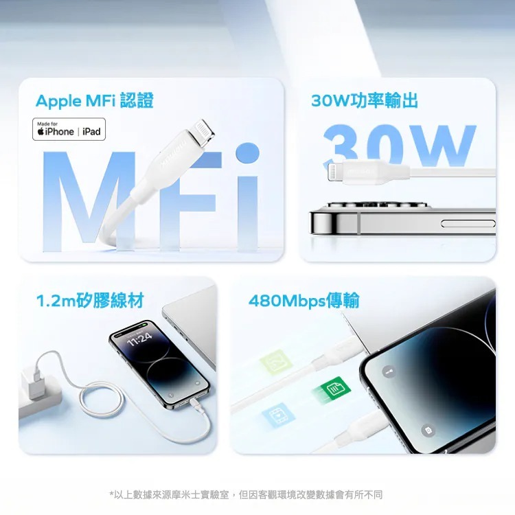 MFi 經過認證,可與 Apple Lightning 設備完美相容