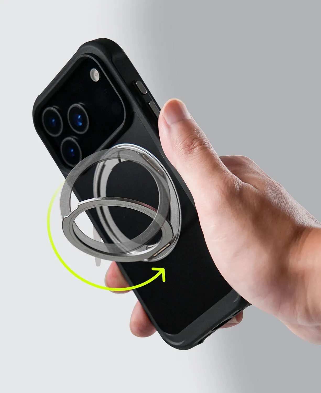 • 360° 旋轉支架:穩定阻尼設計,可停在任意角度。支架上有雷雕環形 LOGO,質感升級。