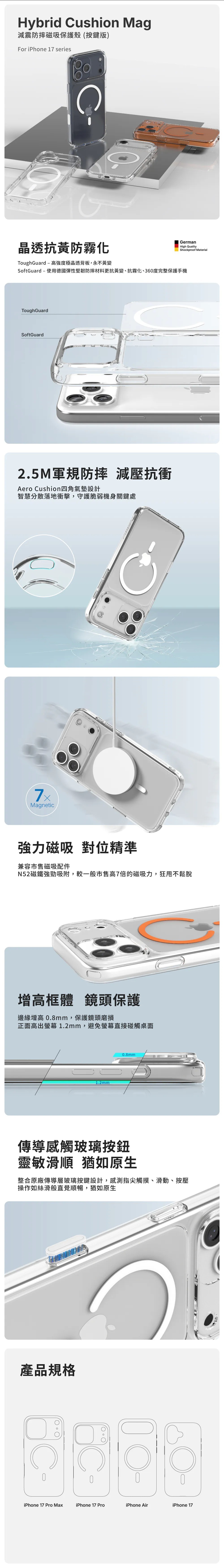 | 兼容磁吸無線充電:可兼容磁吸無線充電以及所有磁吸手機配件。