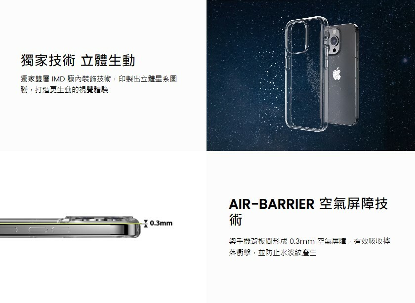 • AIR-BARRIER 空氣屏障,有效吸收衝擊,防止手機背板破裂