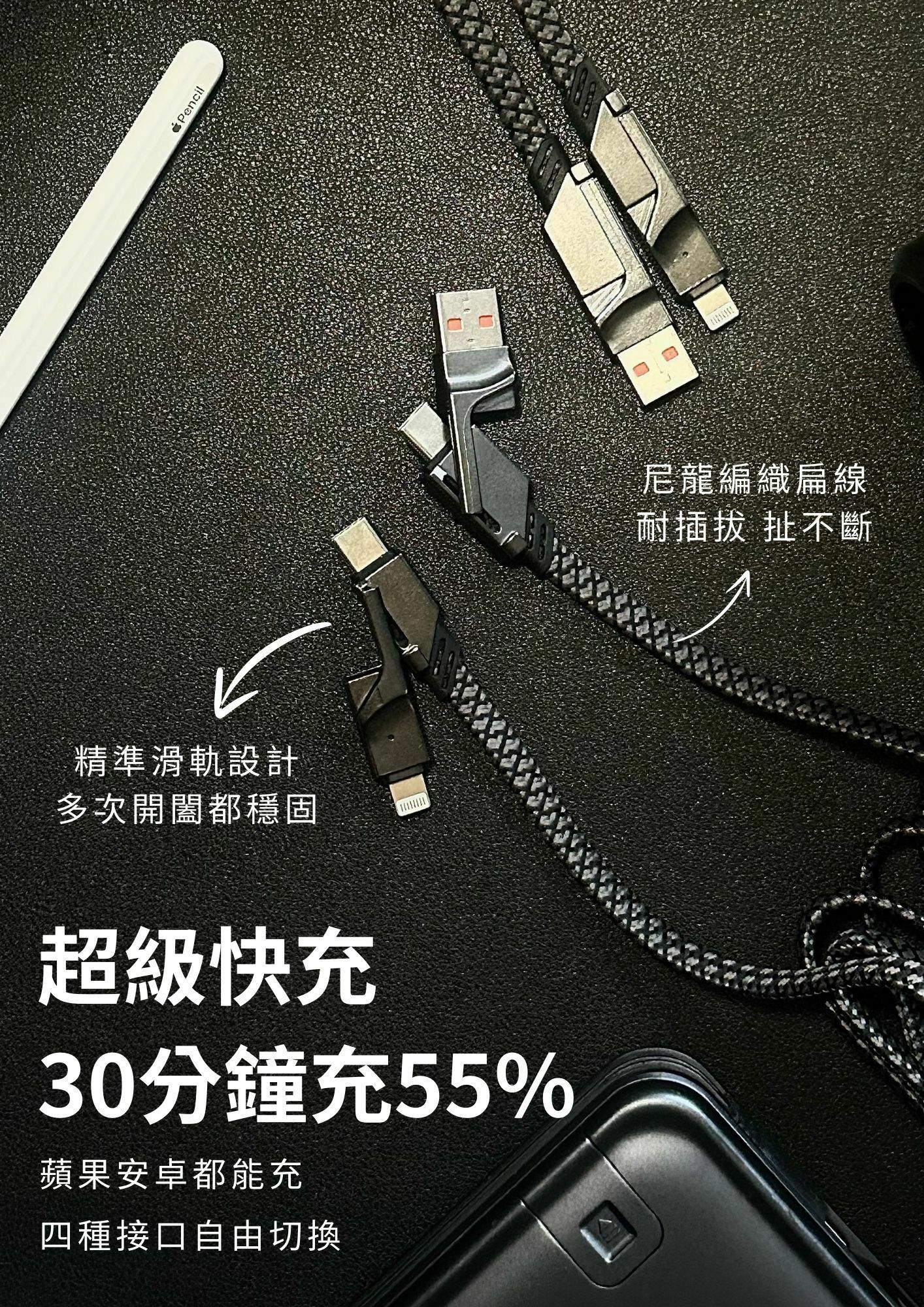 100w 四合一充電線+Polybatt超薄款磁吸快充三用行動電源 【F84】
