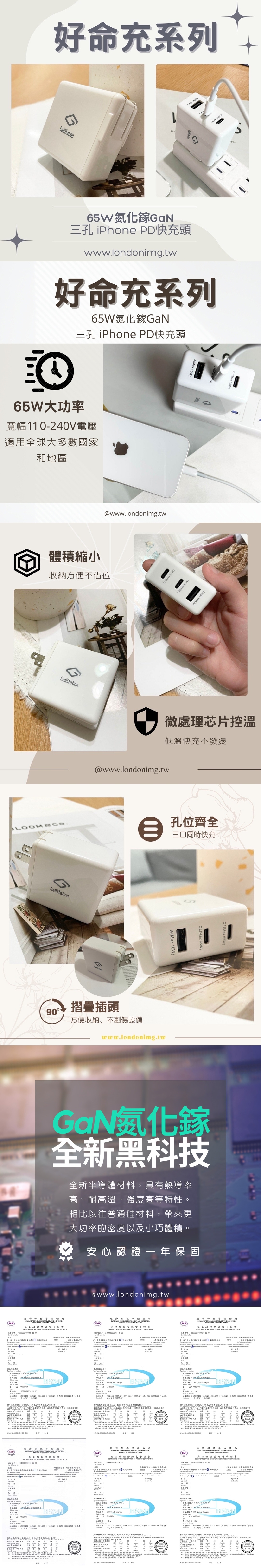 5W氮化鎵GaN 三孔 iPhone PD快充頭+YU 1.2M MFI認證iPhone PD快充線【FF94】